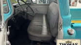 This 3100 shines in a striking Teal paint job with gleaming chrome accents. The standout features include a unique “Task Force Series” chrome grille, chrome hood emblem, and raised “spears” on the hood. The truck has a stepside bed with stained wood, chrome bumpers, and an orange oval “3100 Chevrolet” badge on the fenders. Powered by a 283ci V8 with a 3-speed manual transmission, it rides on body-color steel wheels with moon caps. Inside, the gray vinyl bench seat and simple dash give it a classic feel, ready for a show or a modern upgrade.