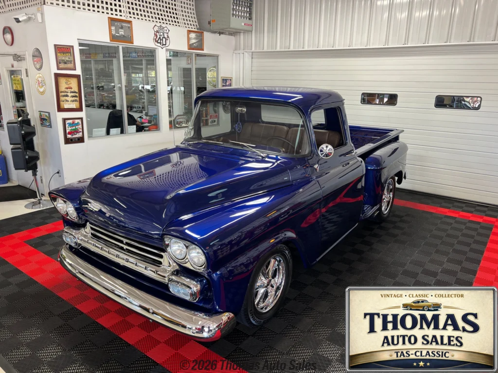 This truck has show-quality fit and finish, with excellent brightwork, including chrome mirrors, bumpers, and headlight bezels. It sits on chrome 5-spoke Foose wheels with Cooper Grand Touring tires. The bed is finished with light oak wood and stainless hardware. Inside, it features a custom bench seat, matching headliner, door panels, black carpet, tilt wheel, Dakota digital dash, AM/FM stereo, and cold A/C. Powered by a 350ci crate engine with only 587 miles, paired with a 700R4…