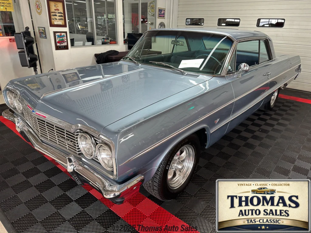 This 1963 Impala features a stunning Silver Blue Metallic paint and chrome accents. It’s powered by a rebuilt 327 V8 engine with Edelbrock components, paired with a 2-speed Powerglide transmission. The interior is a beautiful light blue with a two-tone bench seat and tilt steering wheel. It also comes with cold A/C, and a clean trunk. A perfect classic for cruising!
