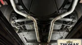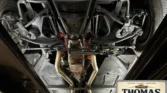 This 1965 Corvette shines in its original Rally Red paint with a crisp white convertible top. The paint is in good driver-quality condition with minor imperfections. It features pop-up headlights, a mirror-like front bumper, and a cross-flags badge. Bright accents like rocker moldings, door handles, and fender badges add to its appeal. The car also includes a red hardtop for a different look. At the rear, quad tail lights, a cross-flags gas cap, and chrome exhaust tips complete the stunning look. It rides on alloy spinner rims with knock-offs and Goodyear Regatta 2 tires.