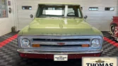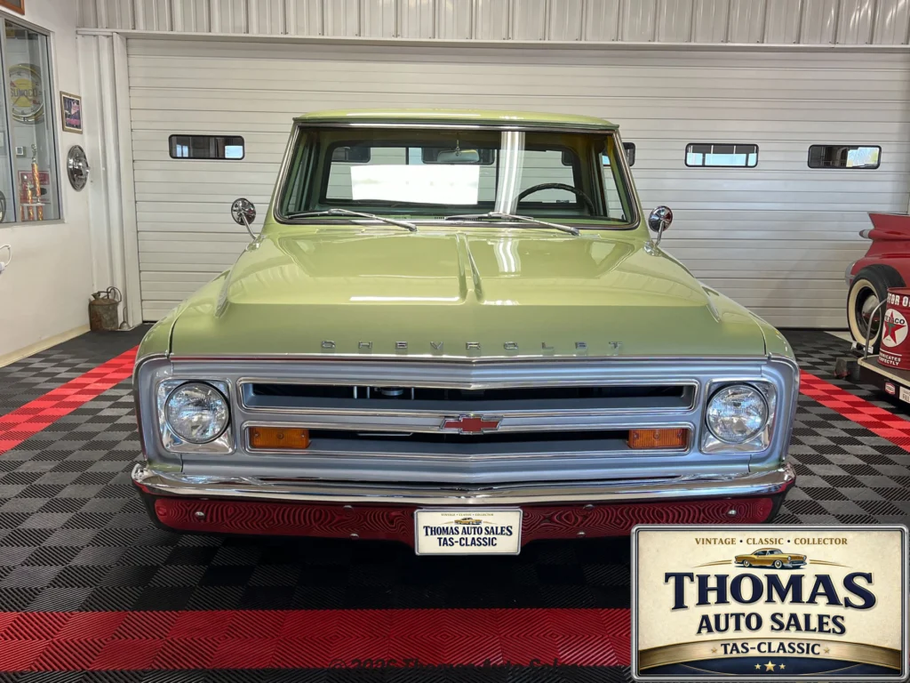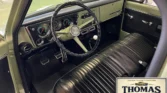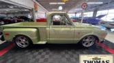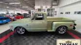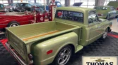 This Chevy features a stunning light green paint job, chrome bumpers, new grille, and gleaming accents. The gas tank is relocated, and the rear window is upgraded to a 4-panel slider. The bed has new wood, with a relocated gas fill. A lowered stance, chrome wheels, and Venezia Crusade HP tires complete the head-turning look.
