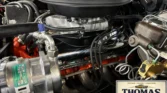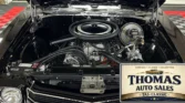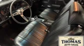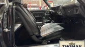 This 1970 Chevelle is a true icon of American muscle, now dressed in sleek black paint with white SS stripes, a black vinyl top, and matching black interior. The front features a working cowl induction hood, hood pins, a shiny bumper, quad headlights, and a black grille with white SS badging. Sitting on steel Rally wheels with BF Goodrich Radial TA tires, the car has an aggressive stance. Powered by a bright orange 454 V8 with an Edelbrock intake and new Jet carburetor, it’s paired with a TH400 transmission and 12-bolt rear end. Inside, the black vinyl seats, SS door cards, and Vintage Air A/C create a comfortable, stylish ride. With just 27,057 miles, this Chevelle offers a mix of muscle and luxury. It’s an incredible example of a 1970 big block muscle car.