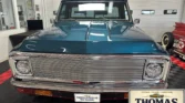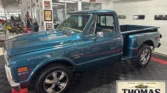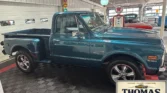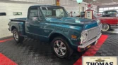 This stunning C-10 features high-quality aqua blue paint and gleaming chrome accents. The truck showcases a large rectangular grille, a cowl hood, and Custom 10 Deluxe badges. The wood bed floor, dual exhaust, and chrome Riddler wheels complete the exterior. Under the hood, a 6-liter LS V8 with Vintage A/C, headers, and power steering is paired with a 4L65 automatic transmission. Inside, the tan vinyl interior includes bucket seats, a custom console, and Dakota Digital gauges. Modern…